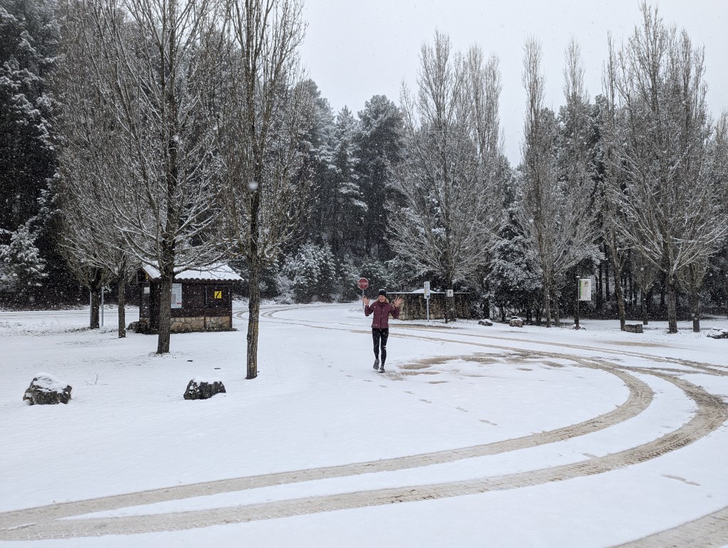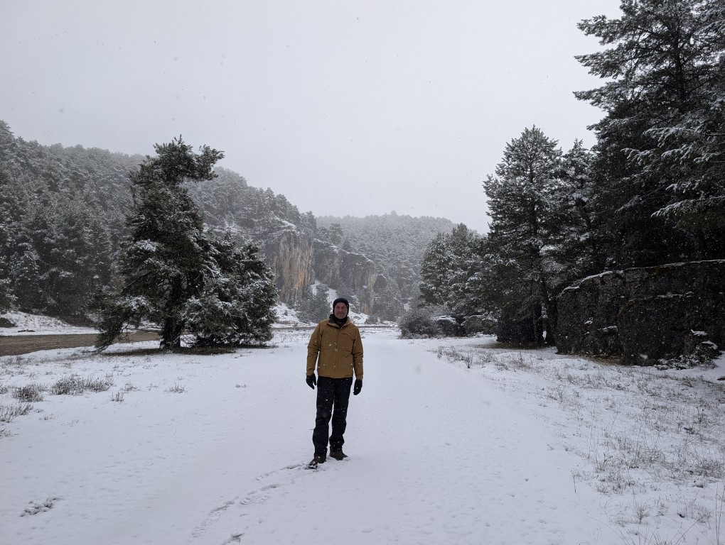 Then we moved down to the Rio Lobos canyon to try and take a hike from the Bridge of the Seven Eyes. It has 7 arches for the water to pass, hence the name. Well, on this day, the usual rain was snow and the water was so high we couldn’t cross the river on the trail we were hiking on so we ended up at a viewpoint instead. Nice day anyway and it always feels good to be outside regardless.