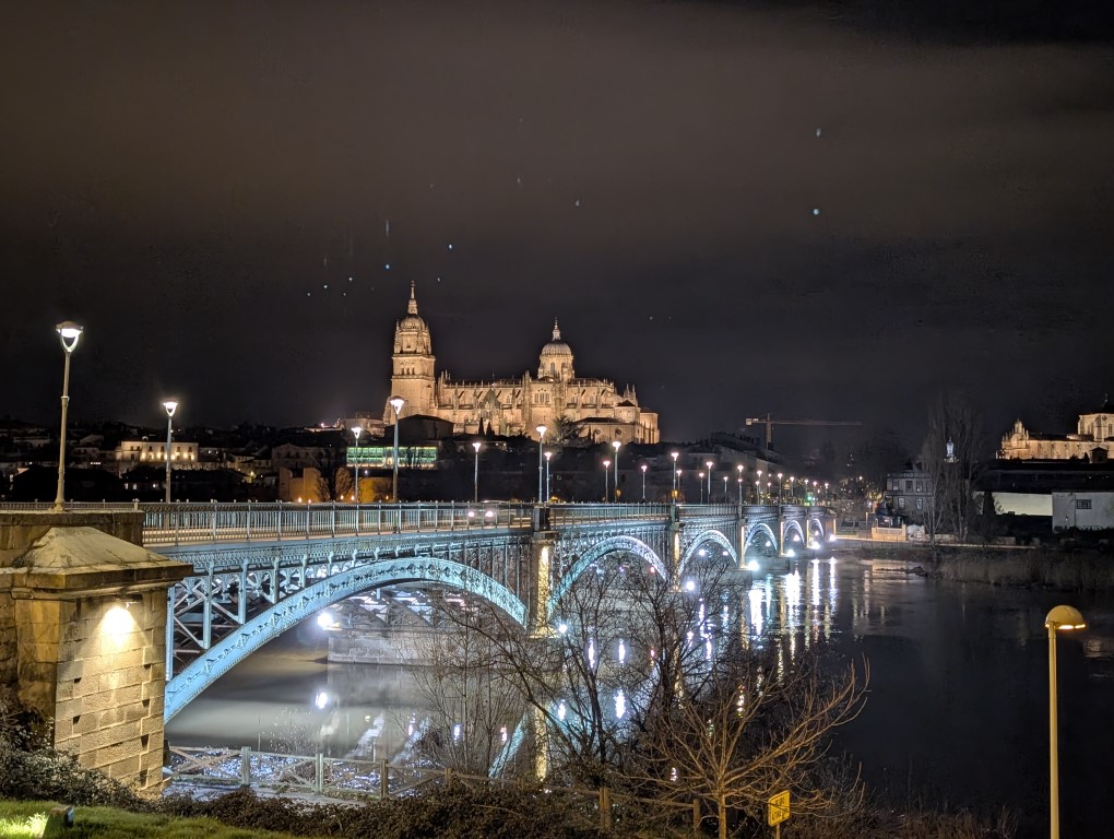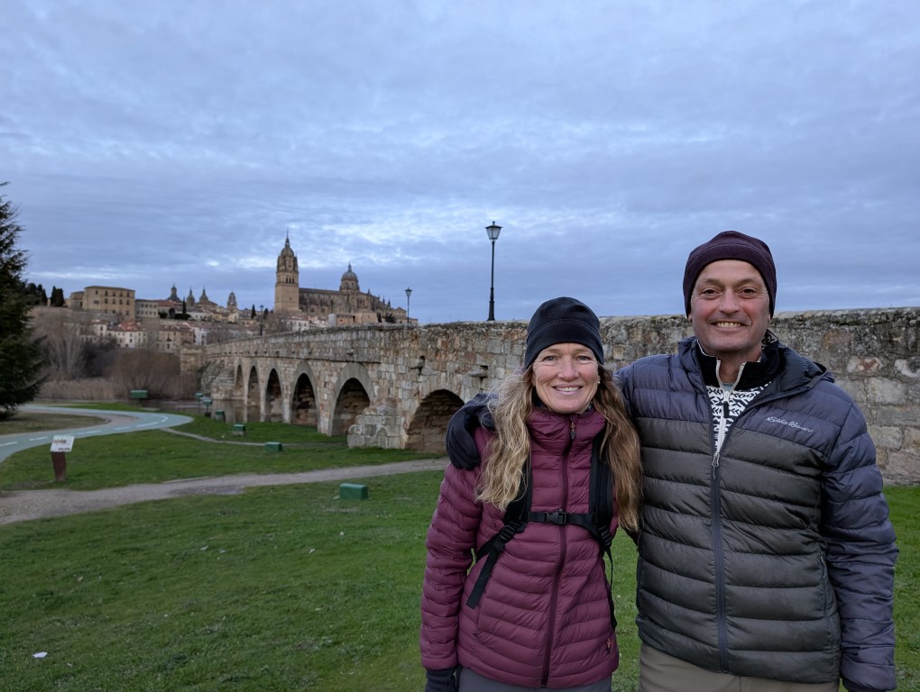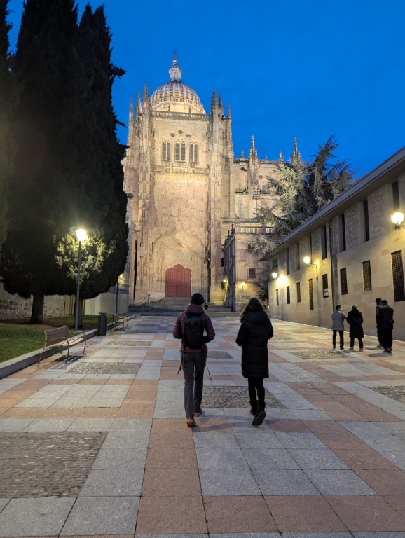 We were on our way to Salamanca when Ivan messaged us that his cousin Carolina who lives right in the old town center was free to meet up that evening if we wanted to tour around together. What a great idea and it’s always more fun to meet someone new and get a local’s perspective. We met on the old Roman pedestrain bridge and then walked all over the city inside the walls. She showed us the old university that began in 1218, the lovely library with the shells on the outside walls, Calixto Garden, the Plaza Mayor, the Cathedral and a few other hidden spots. Then a nice dinner of Salamancan specialties. Good company and a nice moon. It was a perfect evening.