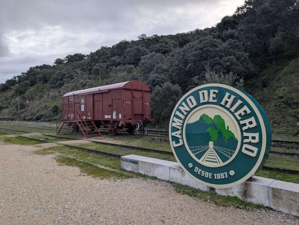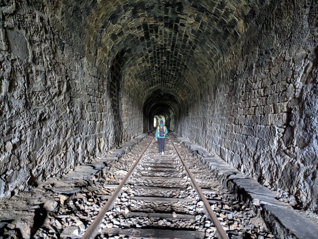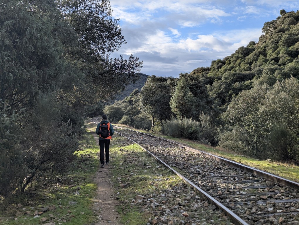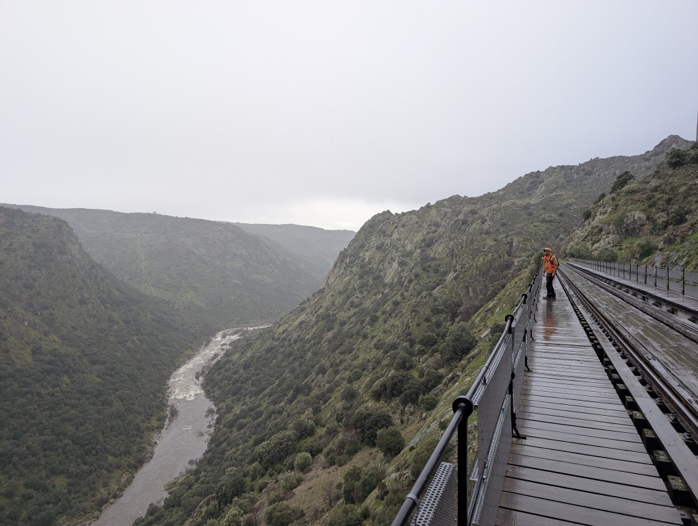 It was time for some long walking days. We drove westward from Salamanca through the beautiful Duero River Valley full of wineries and positioned ourselves at the start of the Camino de Hierro historic rail trail on the Portugal border. It was a beautiful spot and we could park in the parking lot of the park visitor center overnight. This elaborately built railroad used to carry Port wine from Porto, Portugal to Salamanca and then carry back grains to Porto. It covers challenging terrain and this 17km section has 20 tunnels and 10 bridges. The tracks are still in place but there is a rough path beside them and its now a walking trail. Park staff transport you to the start of the trail and you walk back to your vehicle. The first tunnel is 1.5km long so this is what you see- the light at the end of the tunnel. They give you a flashlight to make your way through, then you come out to great views, a river, cliffs, waterfalls, cactus, huge bridges, more tunnels and miles of peace.