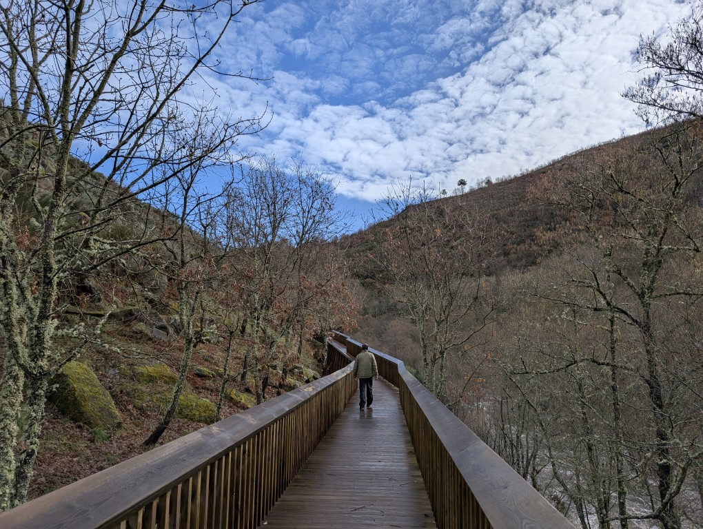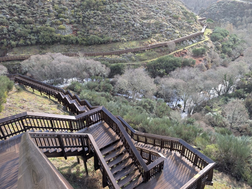That afternoon, we crossed to Portugal and headed to the trailhead of another really cool spot- the Passadicos do Mondego in the town of Videmonte. Have you ever walked on a boardwalk and wished it wouldn’t end? Well the Portuguese seem to have a thing with very Loonnngggg boardwalks. After having done a few of them now, we do still think that these first ones were the Cadillac of the lot. EU dollars helped to pay for the trail and the construction was top notch. We walked 24km in a beautiful canyon mainly on boardwalk with little links on paths at times, once again we were the only people who signed up to go. Price for these boardwalks? 2.50 Euros. What a deal.